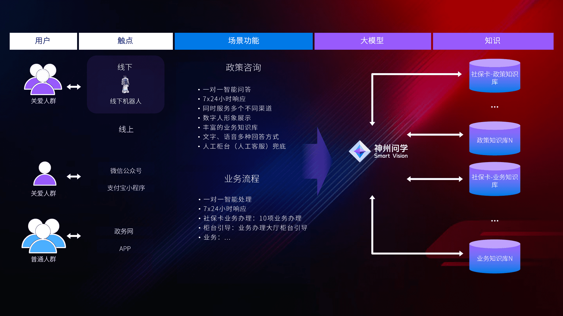 在服务大厅部署客服机器人,,,在线上应用和小程序配置客服数字人,,,724小时为群众解答常规问题,,,,客服机器人无法处理的,,,转现场人工处理。。。